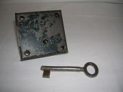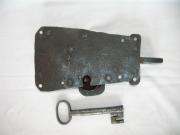 Renoverat lås med platt järnvred, 1700-tal. För vänsterhängd dörr. Nyckel finns.