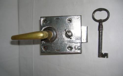 Renoverat lås med trycke av mässing och låsvred av järn. 1900-tal. För både höger- och vänsterhängd dörr. Mått: 9,2 x 8,2 cm Pris: 520 krArtikelnummer: 1768Lås