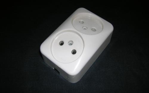Ojordat dubbelt vägguttag i vit plast. 4 st. av olika modell finns.