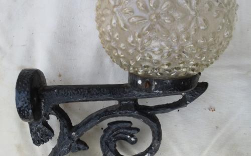 Ytterbelysning, från 1960-talet, av gjuten och målad aluminium avsedd för fasad. Kupan är trasig, varför priset endast avser det gjutna fästet.