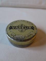 Plåtask som innehållit Vaselin med text Oscar Bäcksin VASELIN Göteborg. Nött ovansida.