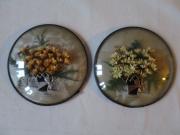 Ett par eternelltavlor inramade under kupat glas försedda med upphängningsöglor på baksidan. Troligen från slutet av 1800-talet.