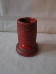 Hållare för svavelstickor av porslin eller lera med originalmålning i rött. De flesta av dessa hållare brukar vara svarvade i trä, därför får denna betraktas som lite...
