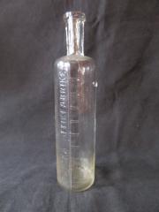 Flaska från Skånska Ättikfabriken med streckgradering i glaset. Flaskan har förslutits med naturkork.