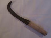 Liten hack med handsmitt blad och skaft av trä. Användes t.ex. för att kvista grangrenar och tunnare virke för slöjdändamål.