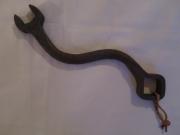 Stor handsmidd skruvnyckel av järn.Har troligen ingått i verktygslådan till en åkvagn.