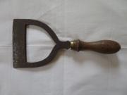 Hackjärn av järn med svarvat träskaft. Bladet rostigt.