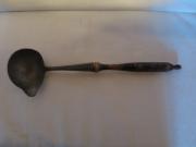Liten soppslev av tenn med skaft av svärtat trä (nu med härligt slitage).