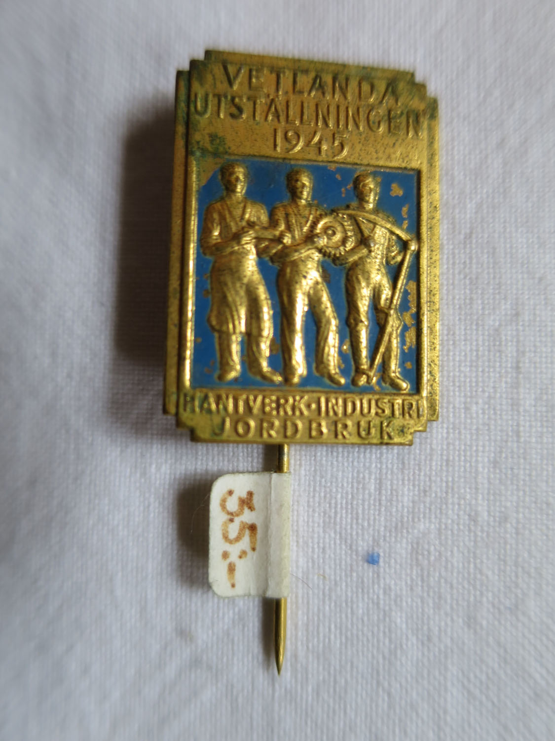 Nålmärken NÄSSJÖ 1939 i förgylld metall. Märkena sitter om 10 st på pappkartor med skyddsomslag. De är tillverkade av C.C. Sporrong & Co. och har uppenbarligen...