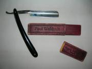 Rakkniv i helt men slitet fodral. Kniven, med benskaft, är märkt C.W. Dahlgren, Eskilstuna.