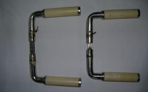 Trycke från 1940-/50-talet, förnicklade med gulvita bakelithandtag. 2 trycken finns med tillhörande långskyltar, 2 st. till varje trycke. Längd: 16,5 cm Pris: 60 kr/st.Artikelnummer: 1960Trycken