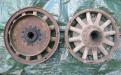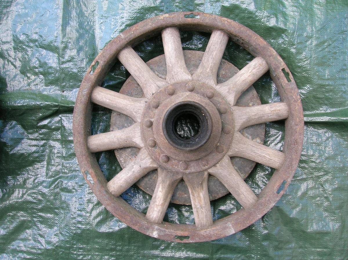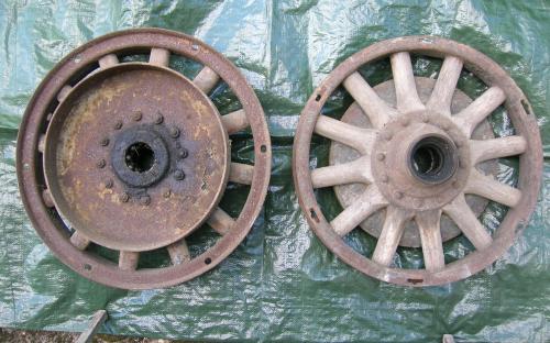 2 st. fälgar av järn med träekrar och kullager. Troligen till bil från 1920-talet eller något äldre. Bra skick förutom rosten! En skadad navkapsel medföljer. Fälgdiameter: 49 cm Fälgbredd: 7,8 cm HÄMTVARA Pris: 2.500 krArtikelnummer: 93Övrigt