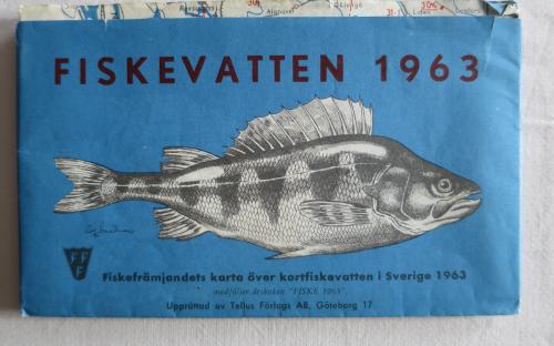 FISKEVATTEN 1963. Fiskefrämjandets karta över kortfiskevatten i Sverige. Utvikningsbar karta 19,5 x 12 cm, som utvikt blir 51,5 x 86,5 cm. Liten reva på framsidan, men i övrigt i fint skick. Pris: 45 krArtikelnummer: 6454Böcker & tidningarFiske, jakt & vapen