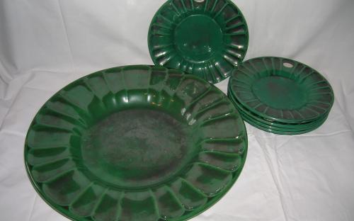 Keramik. Uppläggningsfat + 5 assietter. 1930-tal. Stämplade och etikettmärkta UE samt med skrift 2356 FRED. Dianmeter: 34,5 cm (uppläggningsfat) och 18,5 cm (assiett) Pris: 350 krArtikelnummer: 287KökKeramik & porslin
