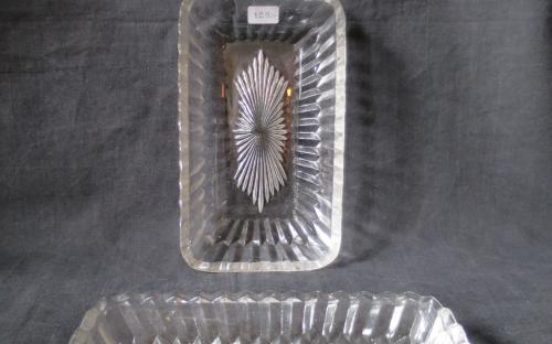2 st. små pressglasfat med stjärnmönster i botten. Delas ej. Mått: 16,3 x 9,4 x 2,8 cm Pris: 125 kr/2 st.Artikelnummer: 1442KökGlas