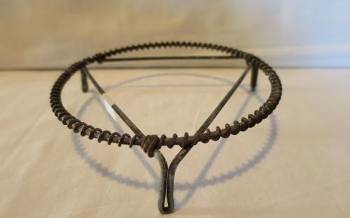 Grytställ, s.k. luffararbete, i obehandlad järntråd. Höjd: 3,3 cm Diameter: 13,3 cm Pris: 90 krArtikelnummer: 9786KökLoppis (inget kostar mer än 100 kr)