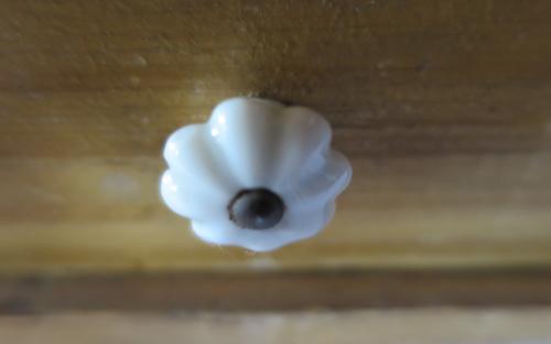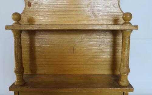 Kryddhylla i björkådringsmålat trä med 2 hyllplan och låda. Hyllan kan både hängas på vägg eller stå på de fyra fint svarvade benen. Visst slitage finns.
