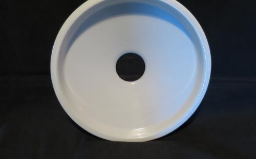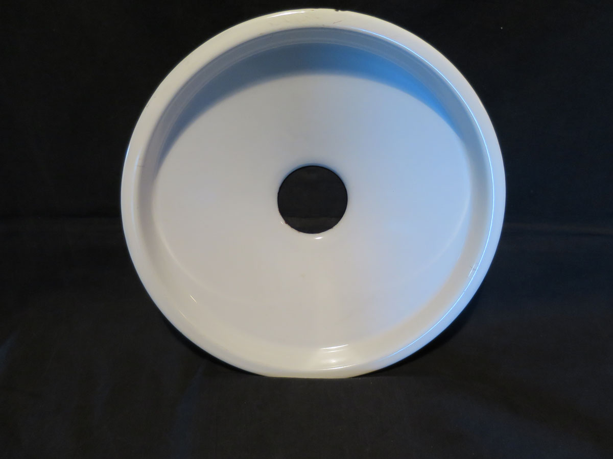 Vitemaljerad lampskärm med några mindre emaljskador. Diameter: 30 cm Höjd: 6 cm Pris: 180 krArtikelnummer: 818Lampor & belysning