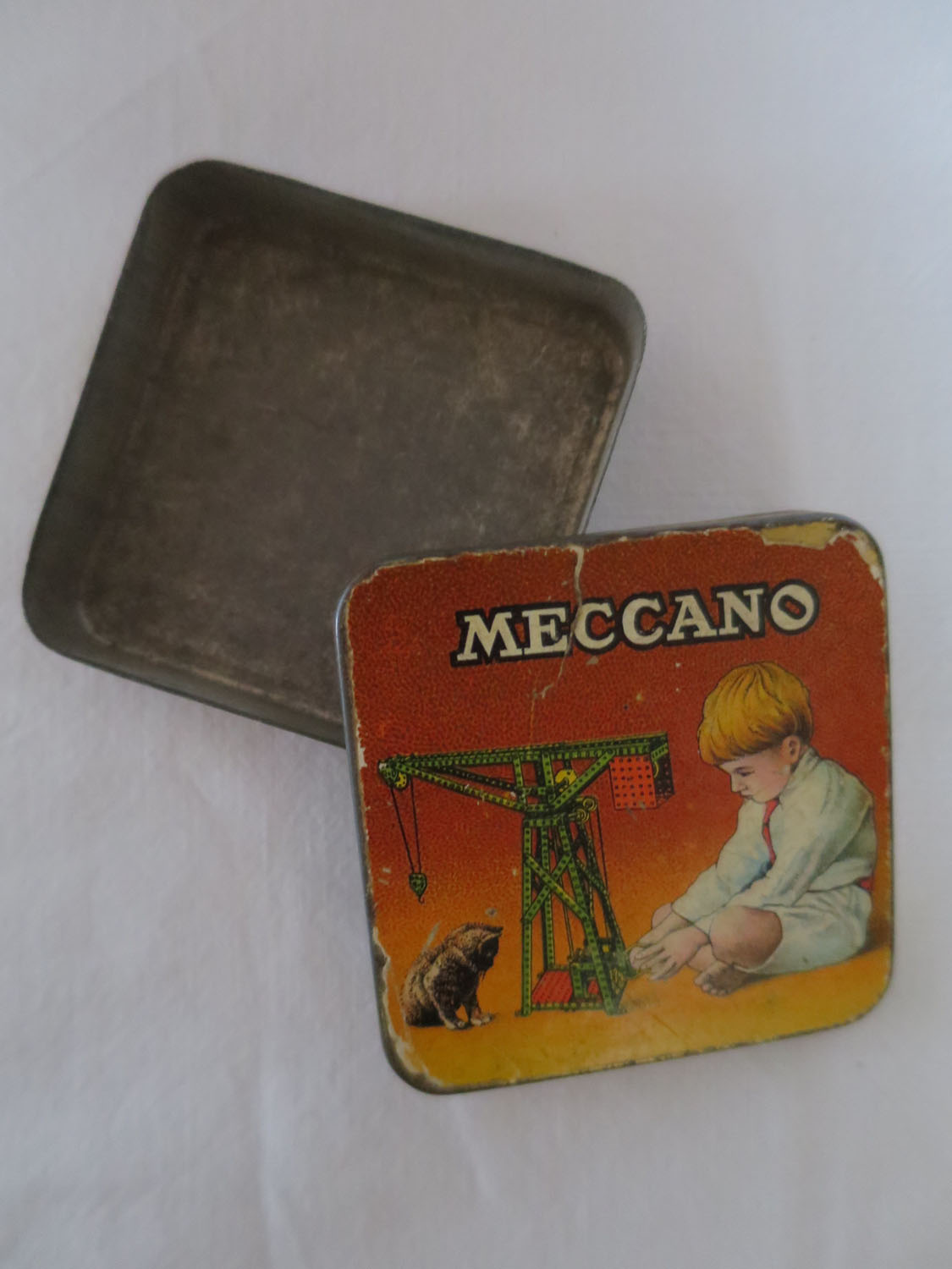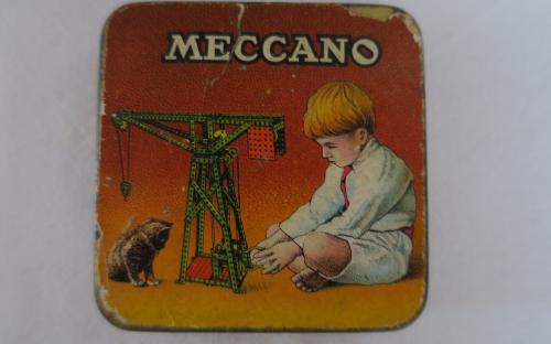 Meccano-ask av bleckplåt med påklistrad etikett, som är något sliten i hörnen. 1920-tal??? Mått: 6,3 x 6,3 x 1,4 cm Pris: 150 krArtikelnummer: 976Kuriosa & samlarföremålBarnets värld