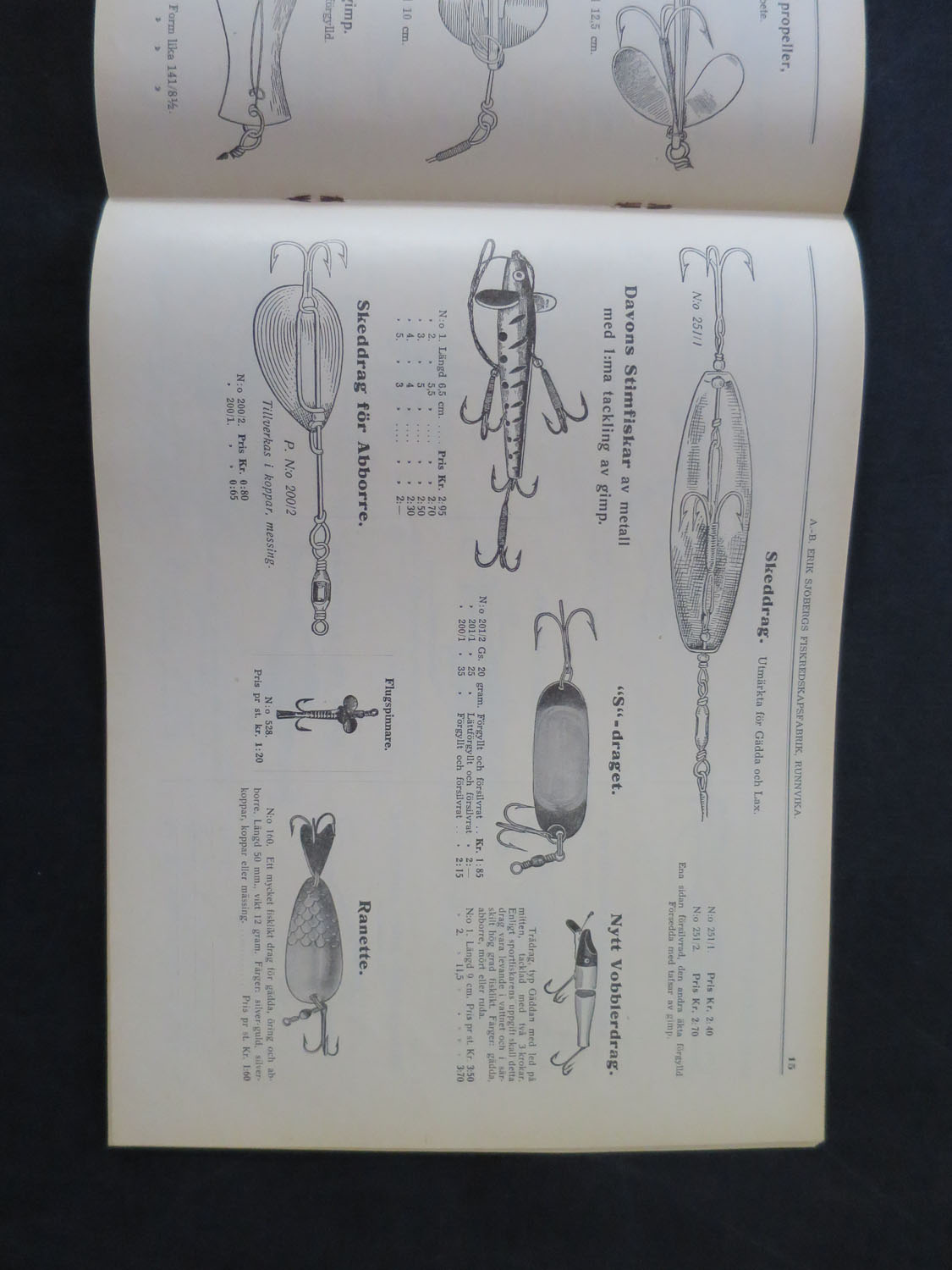 Sjöbergs fiskeredskap Priskurant 1945. Utgiven av A.-B. Erik Sjöbergs Fiskeredskapsfabrik i Runnvika. En priskurant om 30 sidor i ett nästan helt perfekt skick. Mått: 29 x 22 cm (liggande format) Pris: 550 krArtikelnummer: 322Böcker & tidningarFiske, jakt & vapen