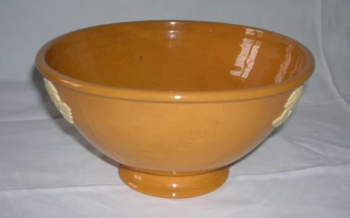 Lergods med vita dekorelement. Stämplad 4 i botten.