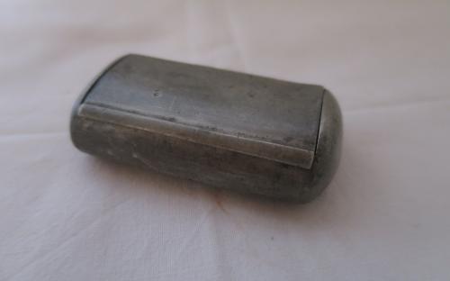 Tenndosa med välvt lock på gångjärn. 1800-tal. Mått: 7,2 x 4 x 2 cm Pris: 350 krArtikelnummer: 158 AKuriosa & samlarföremålÖvrigt