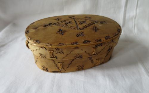 Liten bränndekorerad svepask i otroligt fint skick. Längd: 16,5 cm Bredd: 10,7 cm Höjd: 6,7 cm Pris: 450 krArtikelnummer: 2032Allmoge