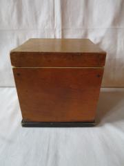 Björkfanerat skrin med svärtad bottenkant från Karl Johan-tid. Möjligen kan det varit ett skrin för förvaring av tobak. En liten fanerbit saknas på baksidan, i övrigt...