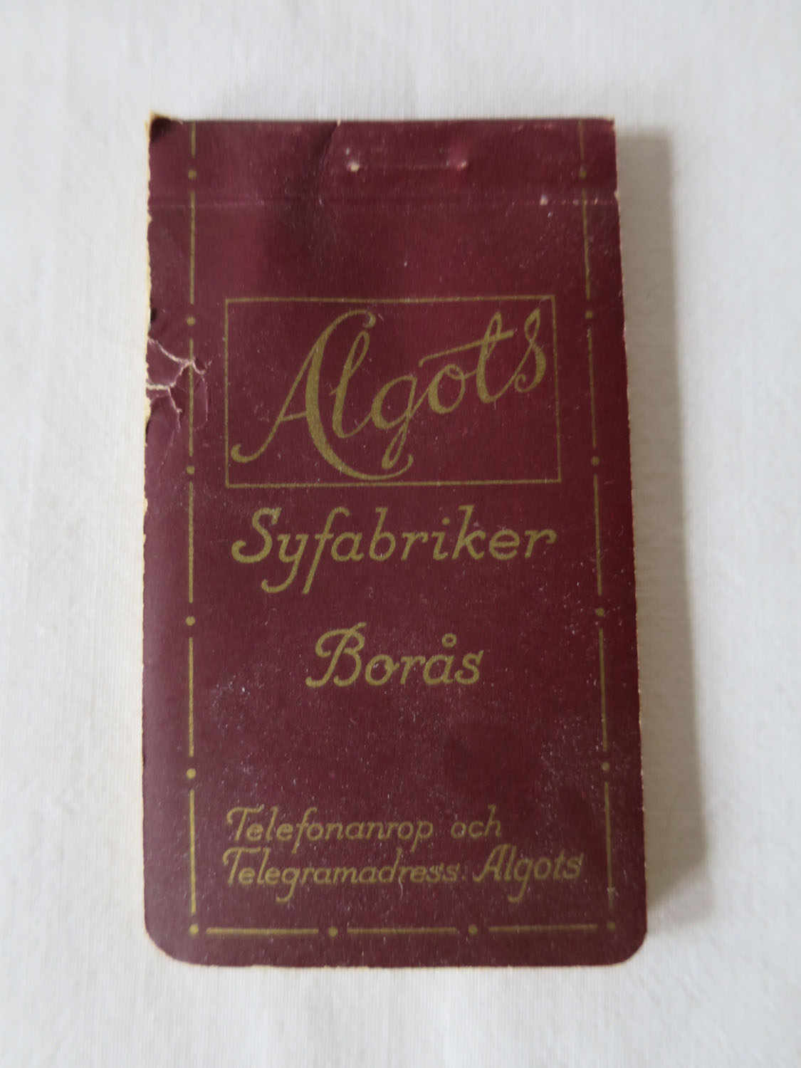 Litet anteckningsblock- reklamutgåva- från Algots Syfabriker i Borås. Helt oanvänt.