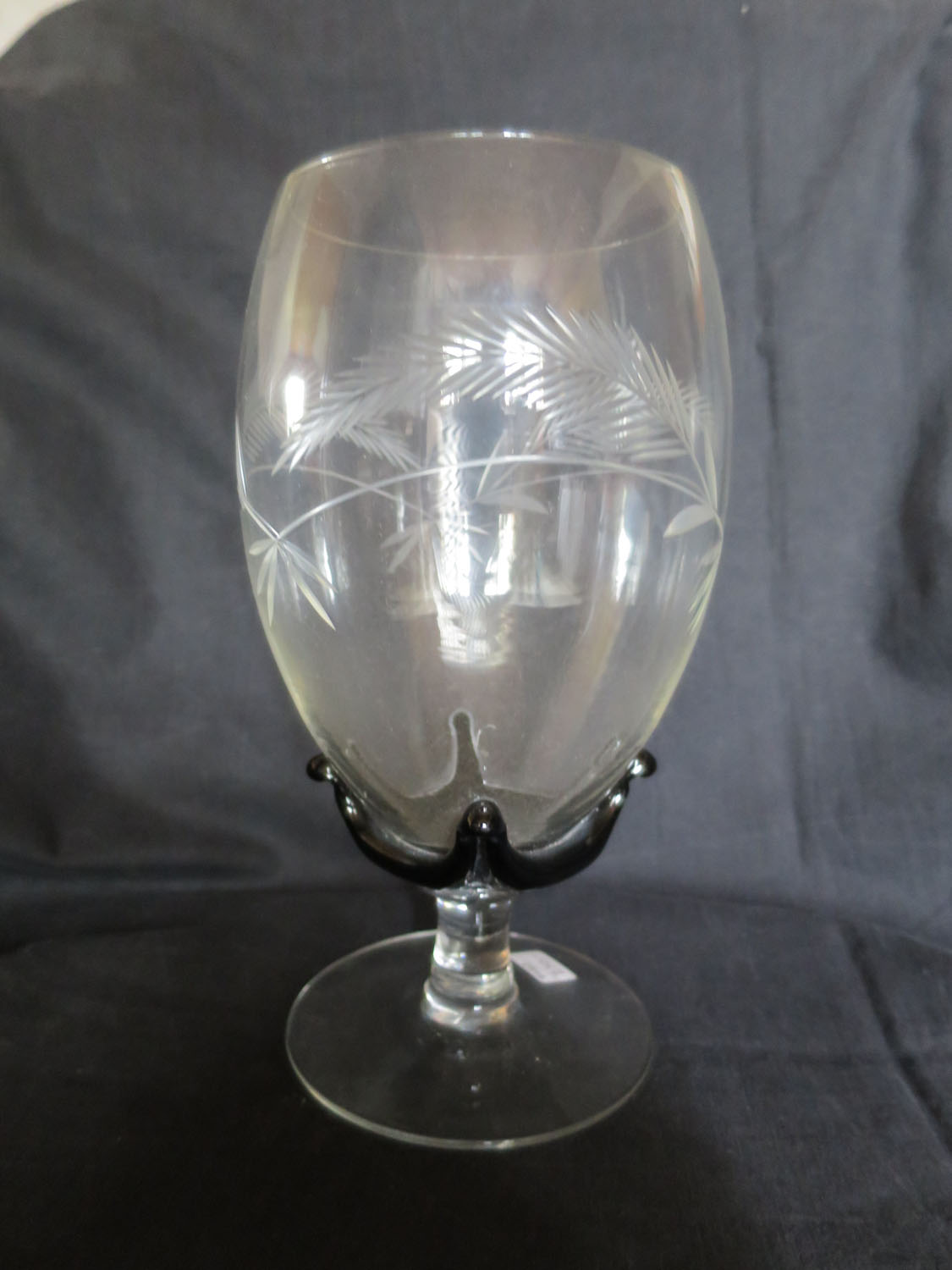 Vas på fot med gravyr av korslagda kvistar. 1930-tal.