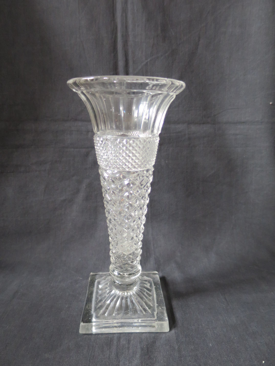 Strutvas med kvadratisk fot av pressglas. 1800-talets sista fjärdedel.