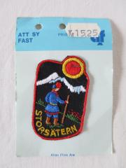 Tygmärke som köptes som souvenir att sys fast på jacka el. liknande. Märket från STORSÄTERN sitter på sin originalkarta och prislappen på 15:25 visar priset under...