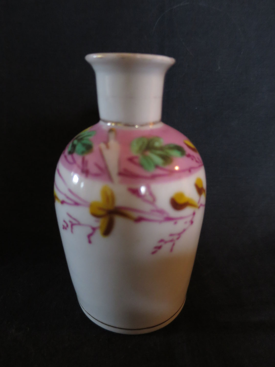 Liten flussglasvas från 1800-talets slut med utanpåliggande dekormålning.