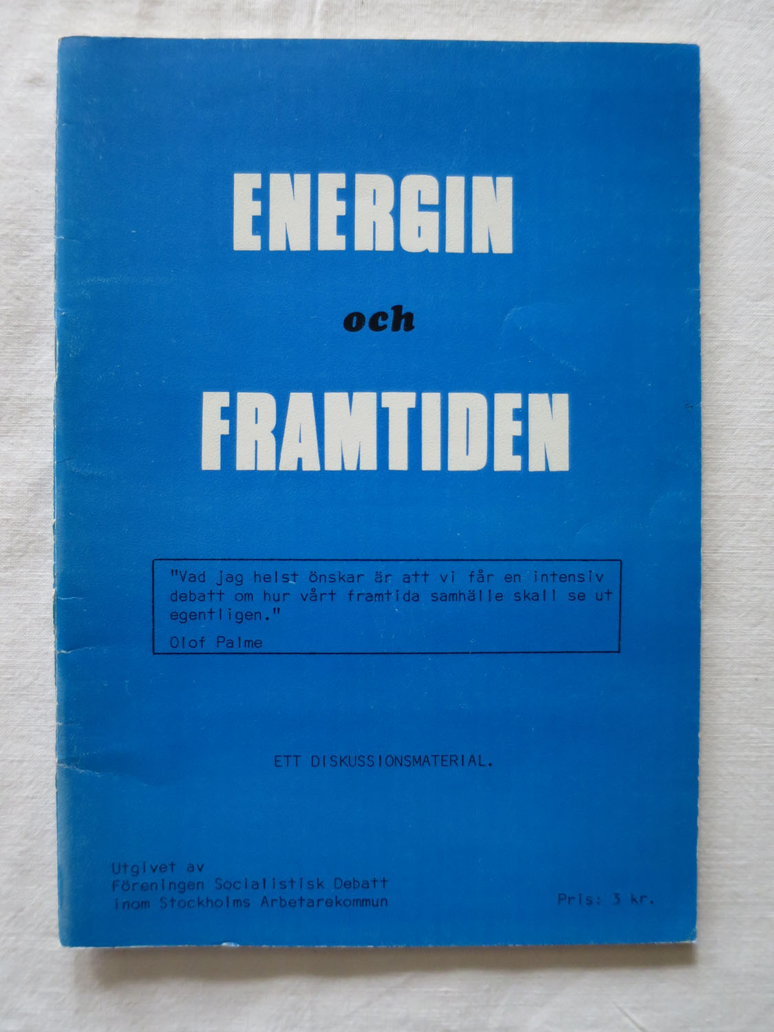 Energin och framtiden. Ett diskussionsmaterial utgivet av Föreningen Socialistisk Debatt inom Stockholms Arbetarekommun. Utan årtal (1973?). 50 sid. Illustrerad. Hft...