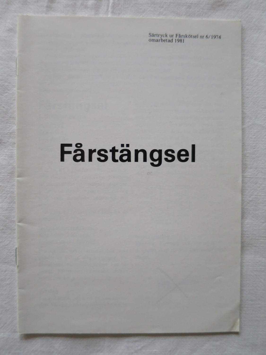 Fårstängsel. Särtryck ur Fårskötsel nr 6/1974 omarbetad 1981. 15 sid. Illustrerad. Nyskick.