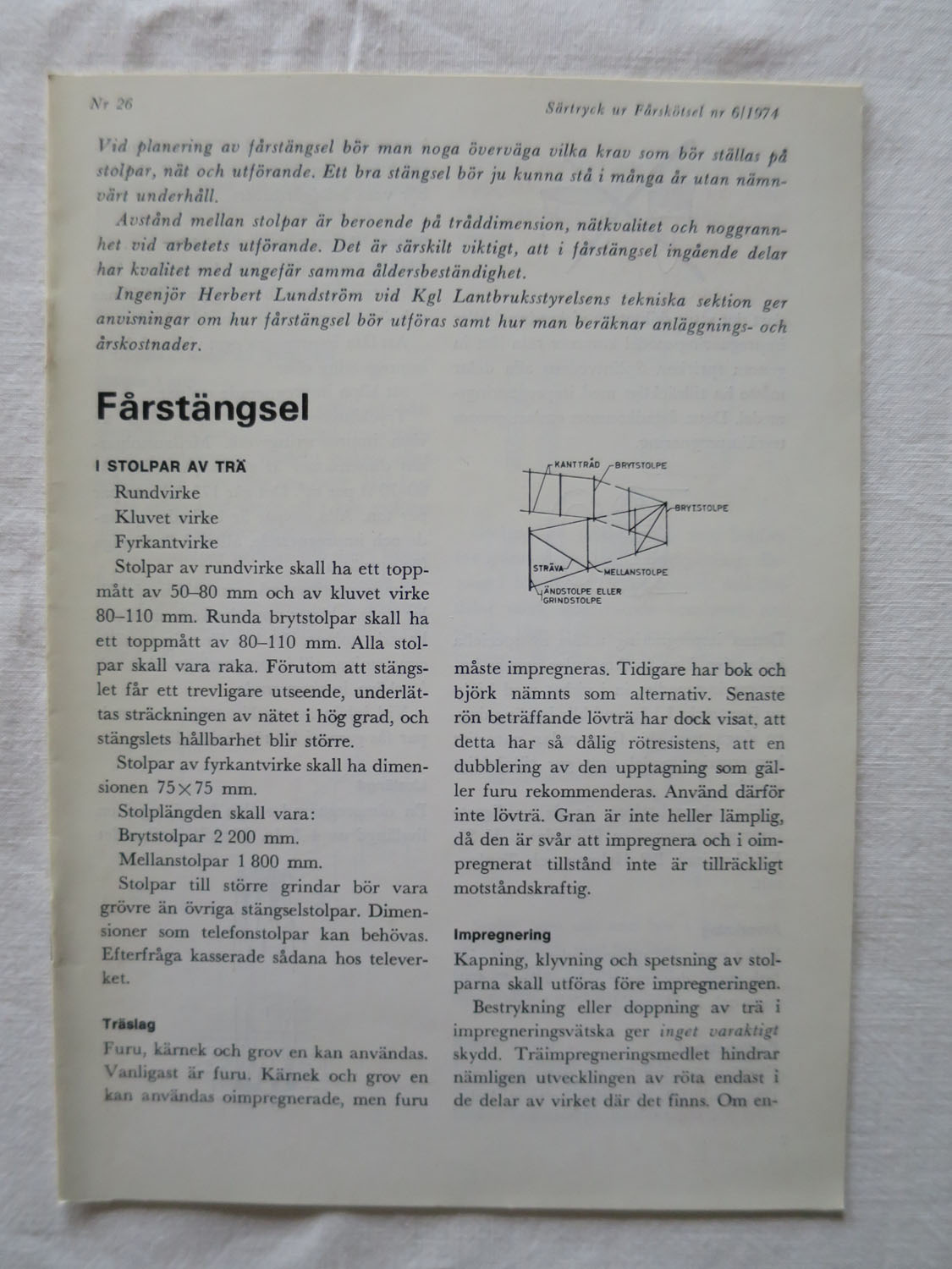 Fårstängsel. Särtryck ur Fårskötsel nr 6/1974. 10 sid. Illustrerad. Fint ex.