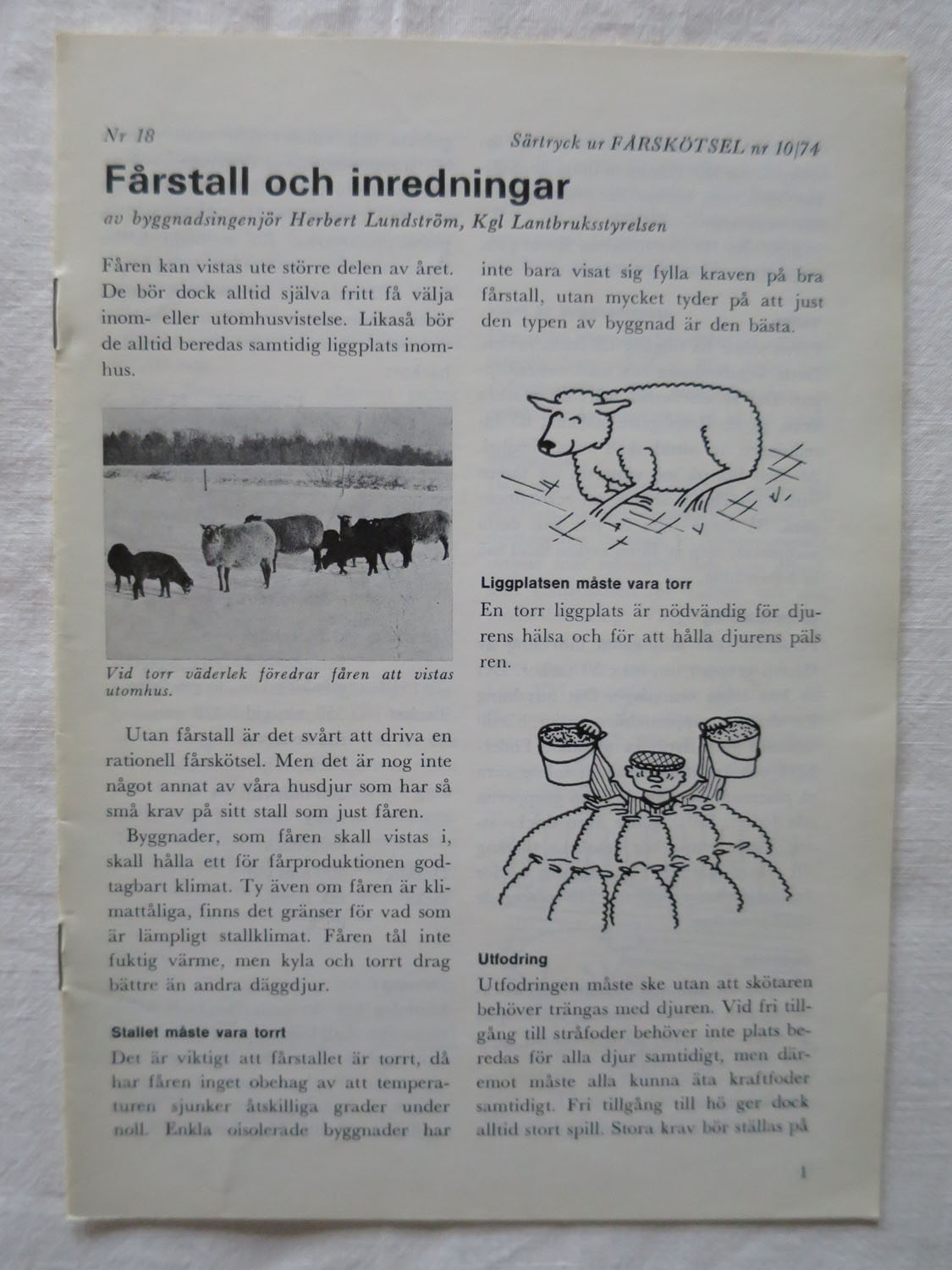 Fårstall och inredningar. Särtryck ur Fårskötsel nr 10/74. 12 sid. Illustrerad. Fint skick.
