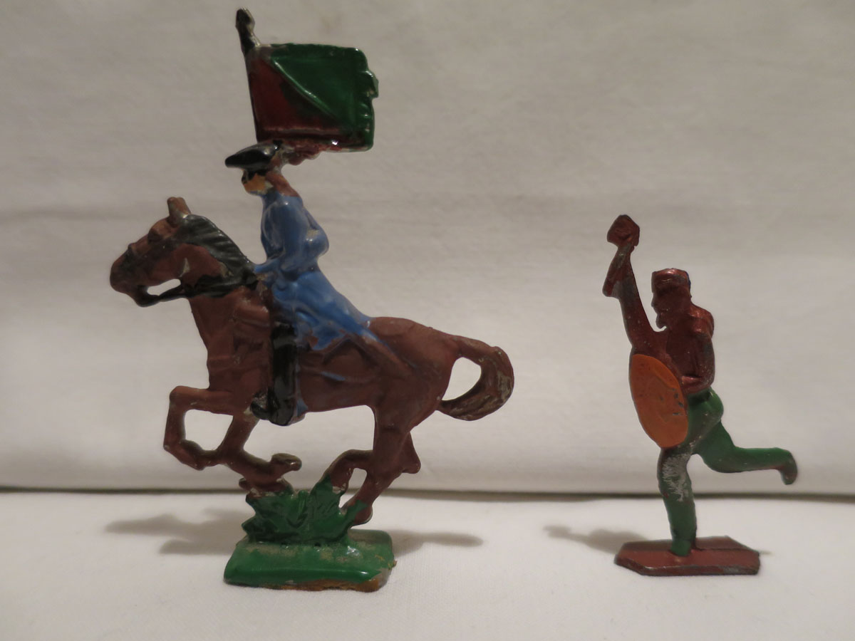 2 st. målade tennsoldater, karolin till häst och fotsoldat.