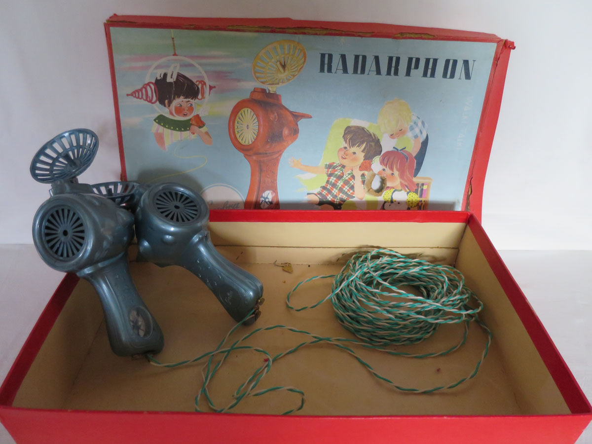 2 st Radarphon av plast och av märket Gevbra med originalkartong. Kartongens lock är slitet och trasigt i hörnen, samt har ett hål, medan underdelen är i fint skick....
