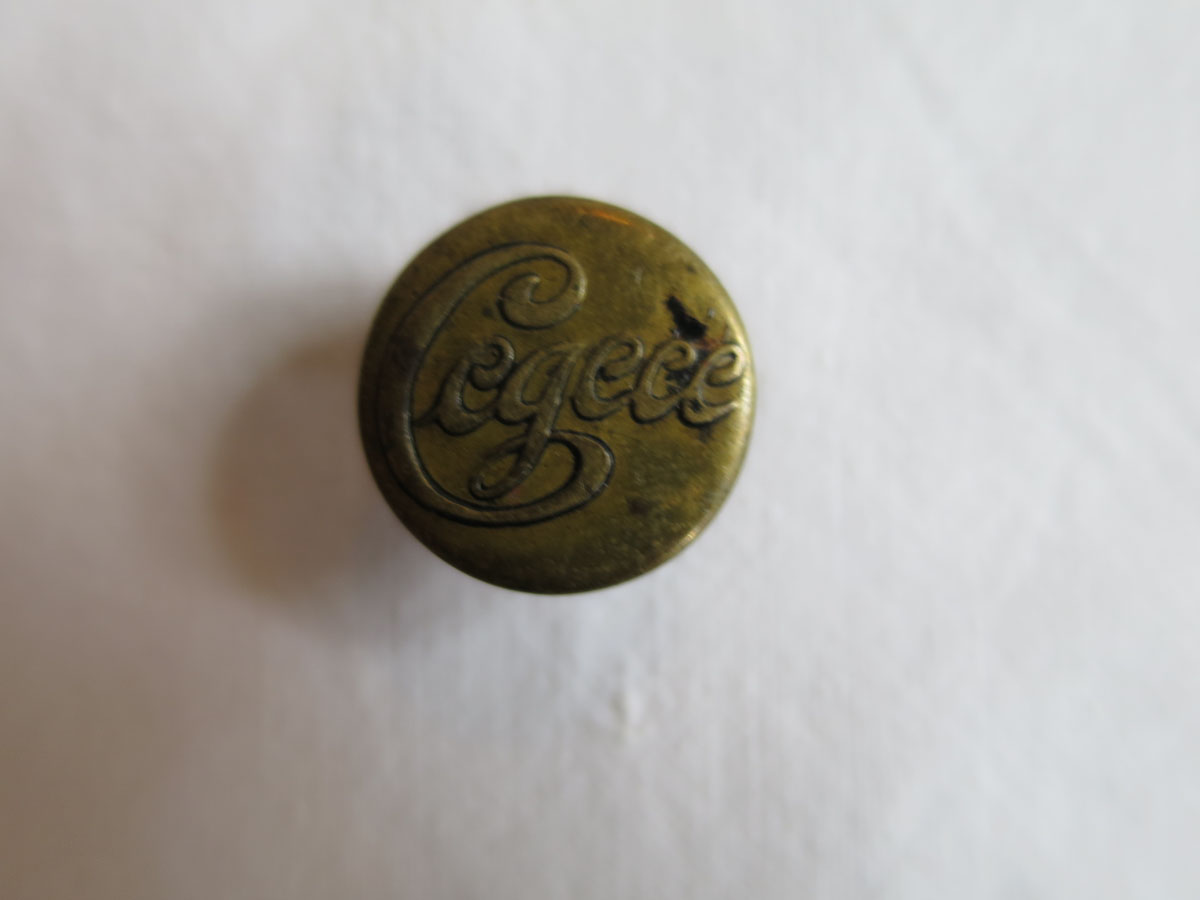 Troligen 2 st. knappar av silver, gissningsvis före 1850. Knappen med cirkeldekor väger 2 g och den med kantdekor väger 3g.