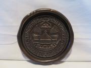 Askfat gjutet i brons med framsida avbildande sigill. På baksidan är följande text ingjuten: Gåva av Skandinaviska Banken Hälsingborg Hösten 1968 samt en...