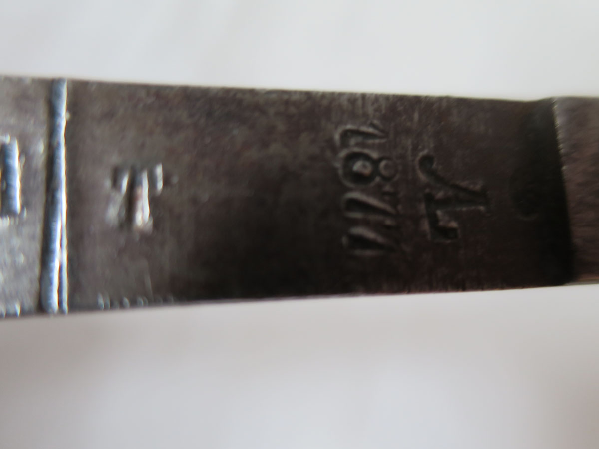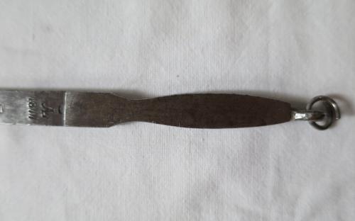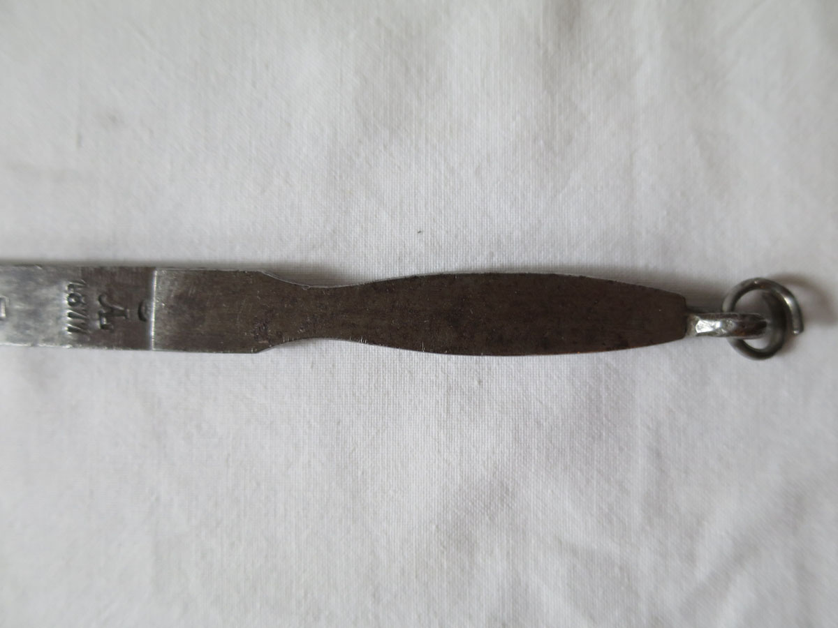 Alnmått av järn, stämplat med krona och initialerna AL (?). Även märkt med årtalet 1877. Längd: 68 cm Pris: 450 krArtikelnummer: 4035Kuriosa & samlarföremålÖvrigtÅrtalsmärkt