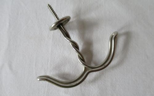 Ankarkrok av förnicklad järntråd. Krokarna kan ha mindre avvikelser vad gäller utseendet då flera tillverkare fanns. Fin patina på de flesta. 47 st. krokar finns. Längd: ca 6 cm Pris: 35 kr/st.Artikelnummer: 3080Spik, skruvÖvrigt