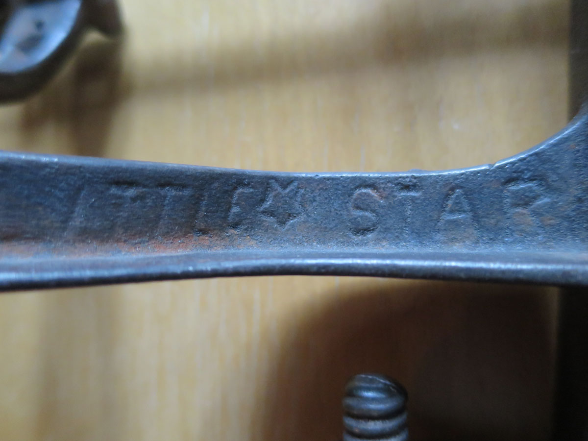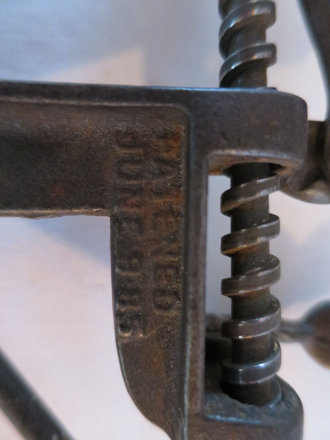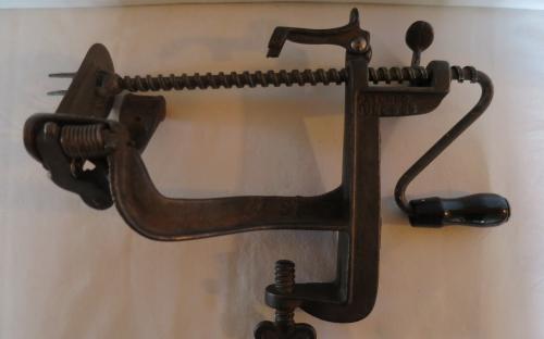 Husqvarnafabrikens äppelskalare.En underbar manick som både skalar, kärnar ur och spiralskivar ett äpple.Tillverkad av gjutjärn. 2 st. finns. Höjd: 17 cm Längd: 24 cm Pris: 350 kr/st.Artikelnummer: 3267-1 och -2Kök