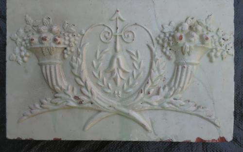 Gult dubbelkakel med reliefdekoration av ymnighetshorn. Har suttit som en dekoration på den övre halvan av en empirkakelugn. Lagat och tömt på lera och tegel. Höjd: 30 cm Bredd: 47,5 cm HÄMTVARA Pris: 2.500 krArtikelnummer: 1218Kakelugnar