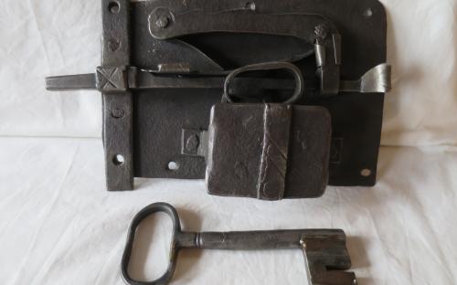 Handsmitt och renoverat lås från 1700-/1800-tal avsett för grövre dörr till bod eller annan ekonomibyggnad. För vänsterhängd dörr. Mått: ca 23 x 15 cm Pris: 3.200 krArtikelnummer: 2864Lås