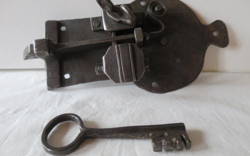 Handsmitt och renoverat bodlås med originalnyckel. För utåtgående vänsterhängd dörr. Längd: 21,5 cm Bredd: 11,8 cm Pris: 3.300 krArtikelnummer: 1484-1Lås