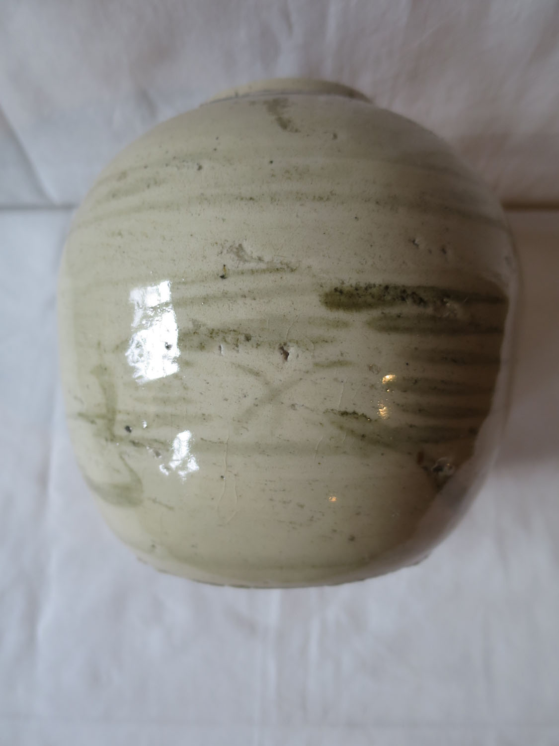 Kinesisk emballagekruka, s.k. bojan, för te, ingefära mm. Denna bojan är av det enklare slaget med enkel streckdekoration. Höjd: ca 14,5 cm Fotringens diameter: 11 cm Pris: 450 krArtikelnummer: 1840Keramik & porslin