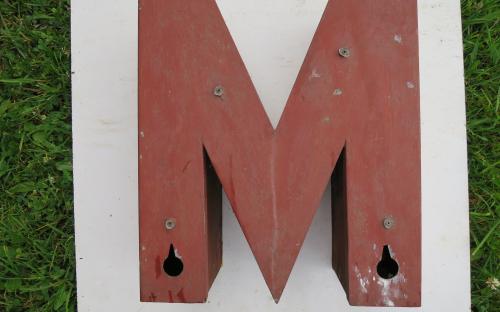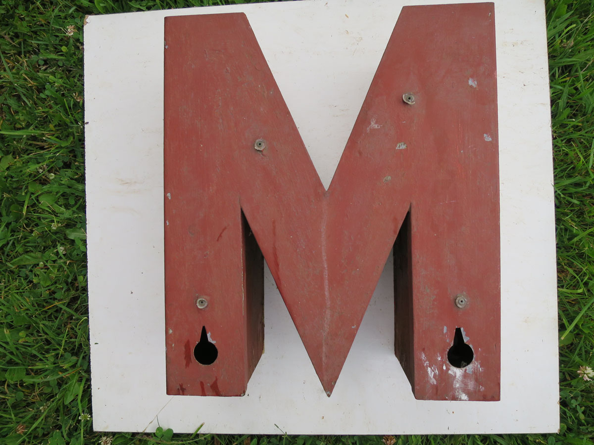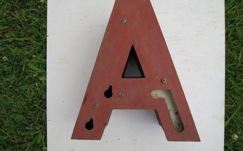 Bokstäver i plåt för neonskrift. A och M saknar dessa glasrör. Höjd: 40 cm Pris: 250 kr/st.Artikelnummer: 26Övrigt