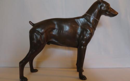 Bronsskulptur av Dobermannhund. Skulpturen har några mindre repor och saknar stämplar. Väldigt elegant och skickligt utförd. Längd: 33 cm Höjd: 27,5 cm Pris: 2.300 krArtikelnummer: 8748ÖvrigtLilla kvalitetsavdelningen